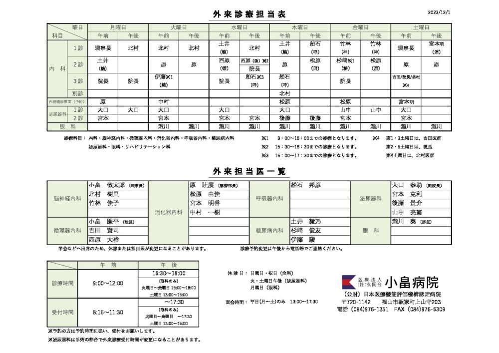 外来診察担当表