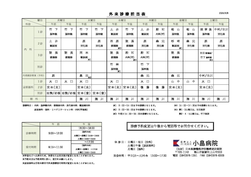 外来診察担当表