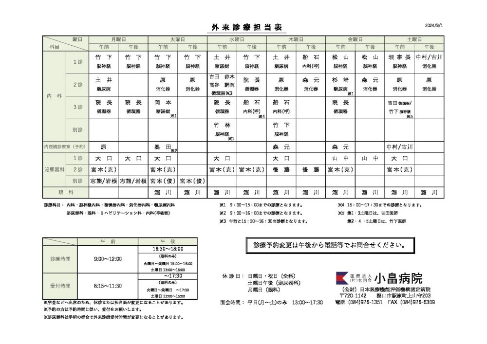 外来診察担当表
