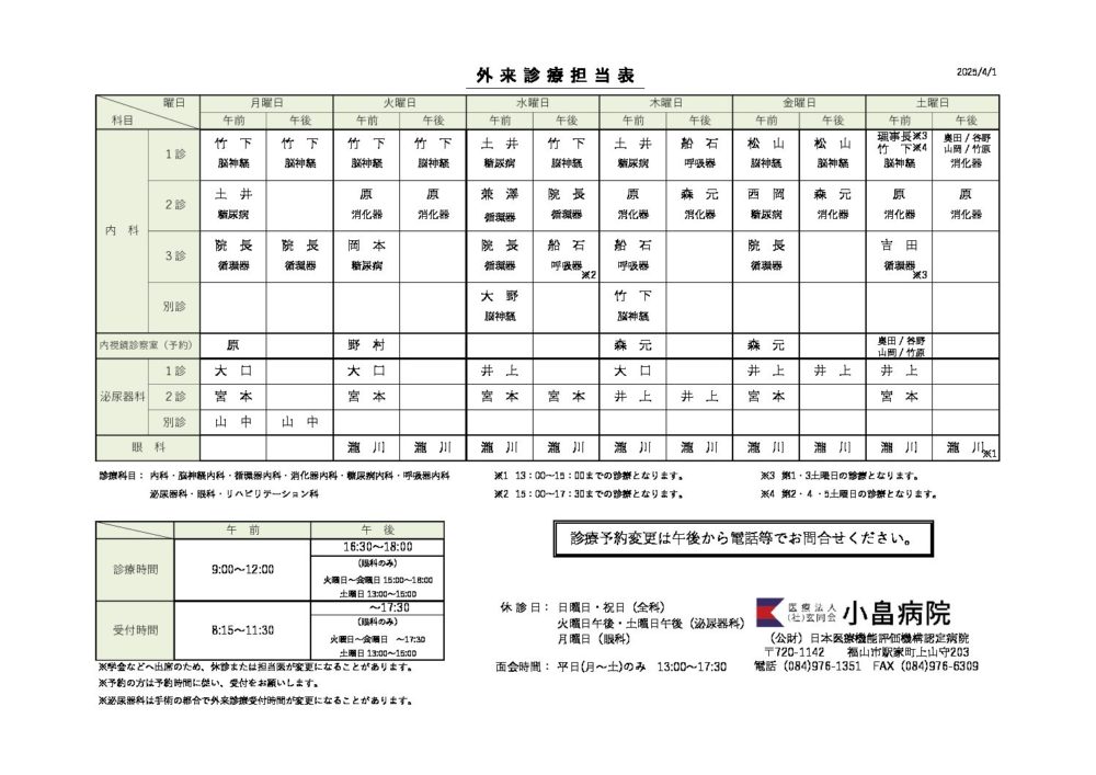 外来診察担当表